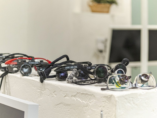 治療をしっかり行うために歯科用拡大鏡を使用しています。拡大鏡を使うことで、肉眼では見えにくい細かな虫歯や歯の亀裂、補綴物との微細な隙間などを確認しやすくなり、より丁寧で的確な処置へ繋げます。