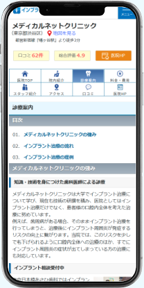 インプラント治療に注力されている歯科医院のみを掲載しています。インプラント治療に絞って情報収集をしている意欲が高いユーザーが集まるので、集患に繋がりやすいサイトです。